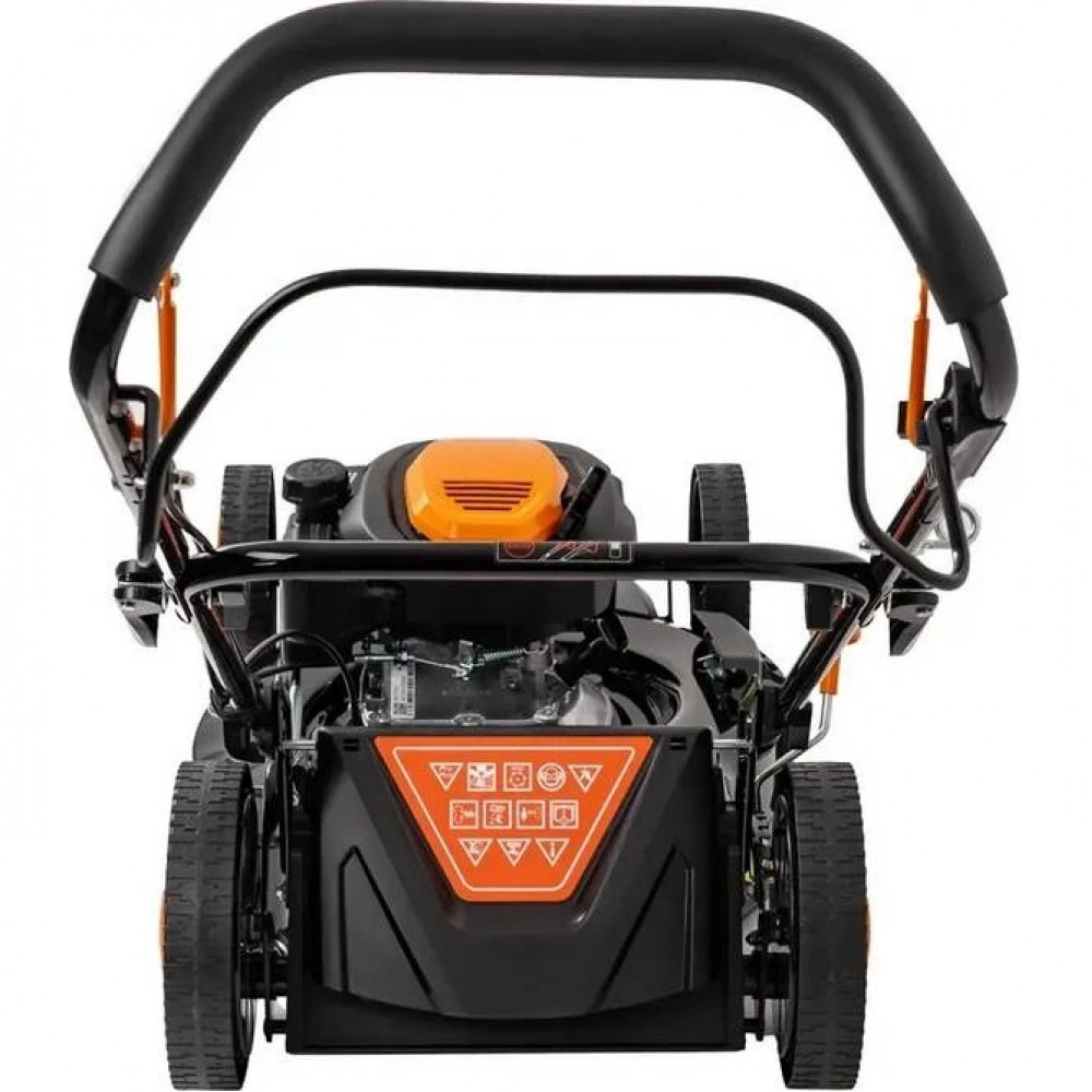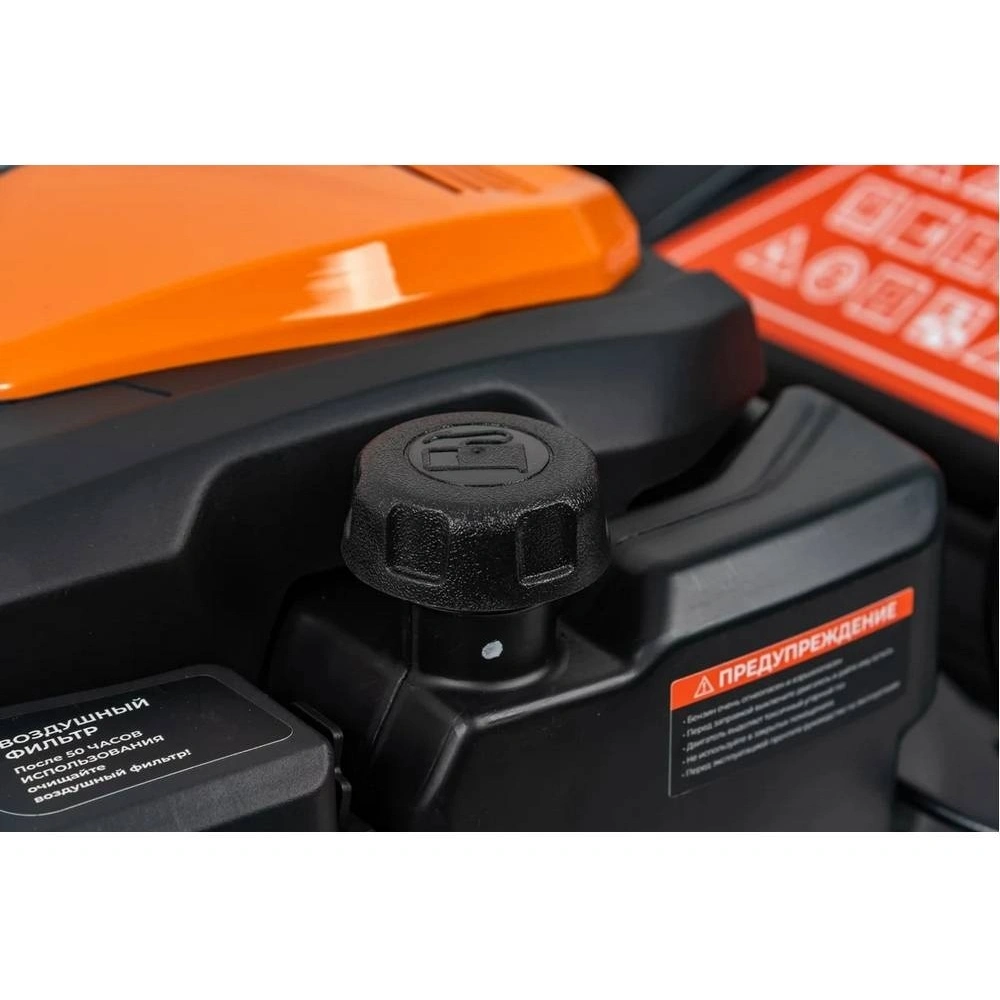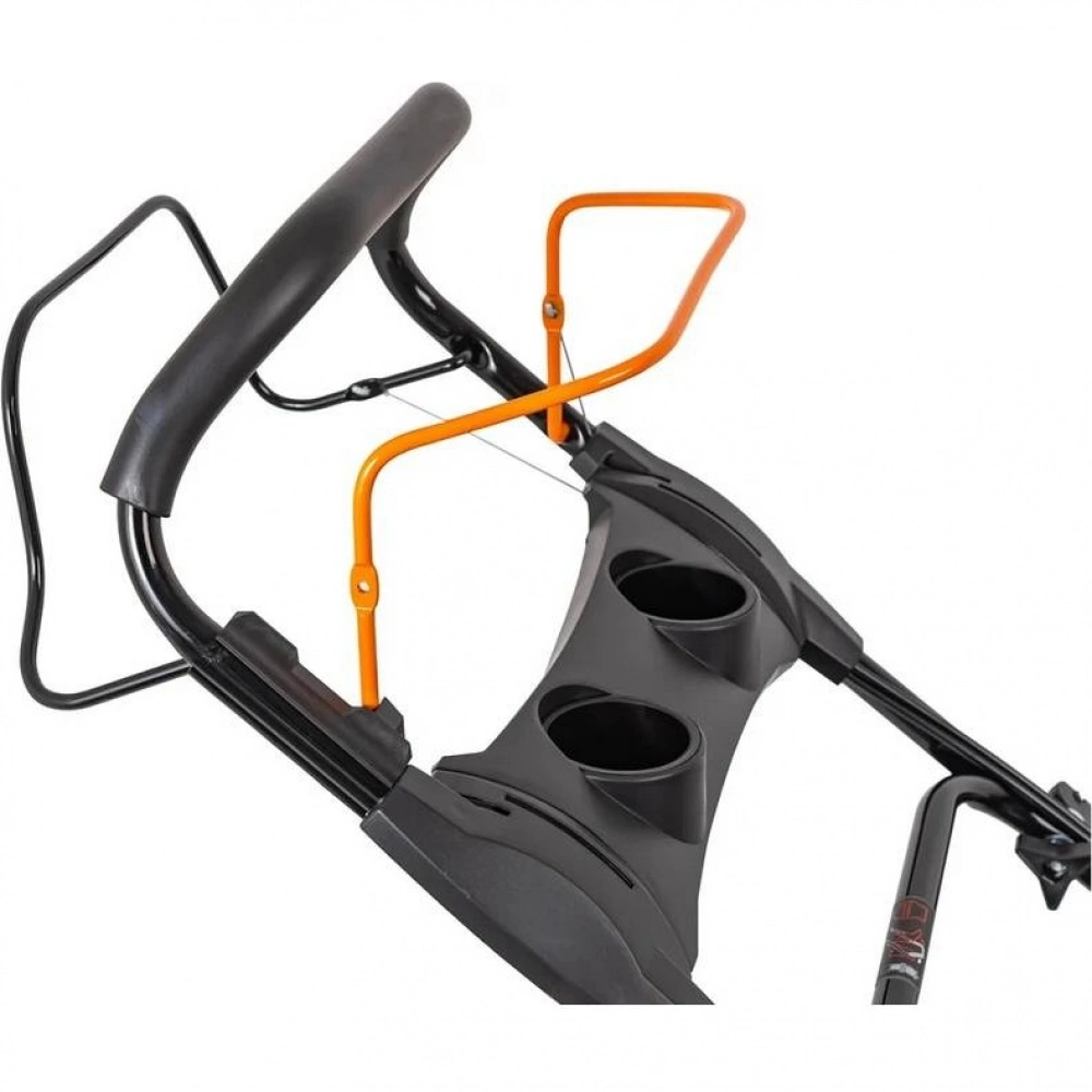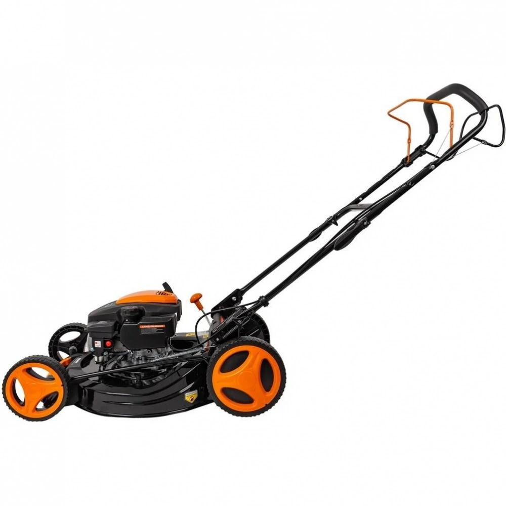 Газонокосилка оснащена вместительным травосборником объемом 60 литров, что минимизирует необходимость частого опорожнения в процессе работы. Кроме того, агрегат обладает функцией мульчирования, что позволяет эффективно перерабатывать скошенную траву в натуральное удобрение для газона.