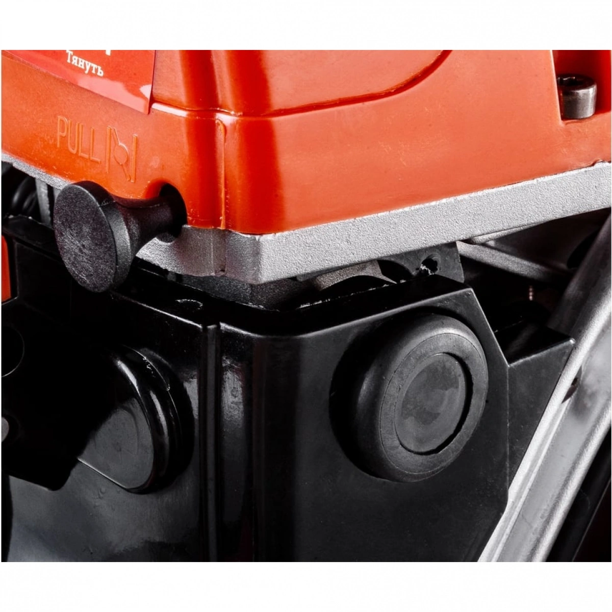 Бензопила Gigant – мощный инструмент для бытовых нужд. Мощность двигателя 2,1 л.с. обеспечивает возможность распила мягкой древесины. Бензопила имеет шину длиной 40 см, поэтому она легкая, быстрая и не требовательна к мощности. Система легкого запуска обеспечивает комфортный завод бензопилы, пользователю не нужно рывком заводить инструмент, достаточно просто тянуть стартер.