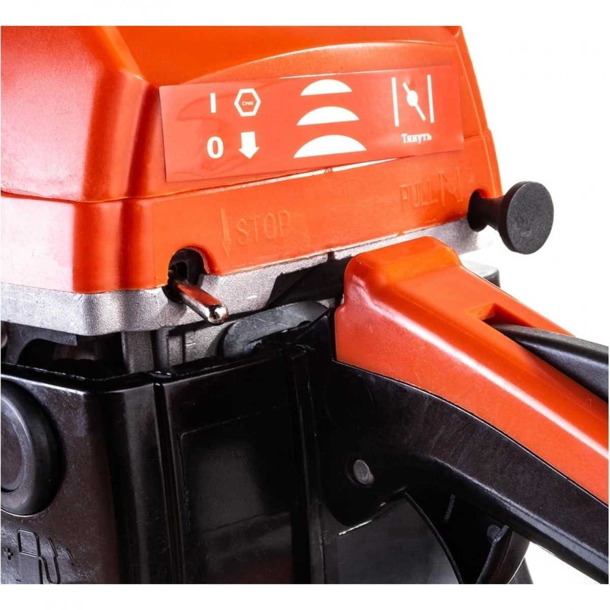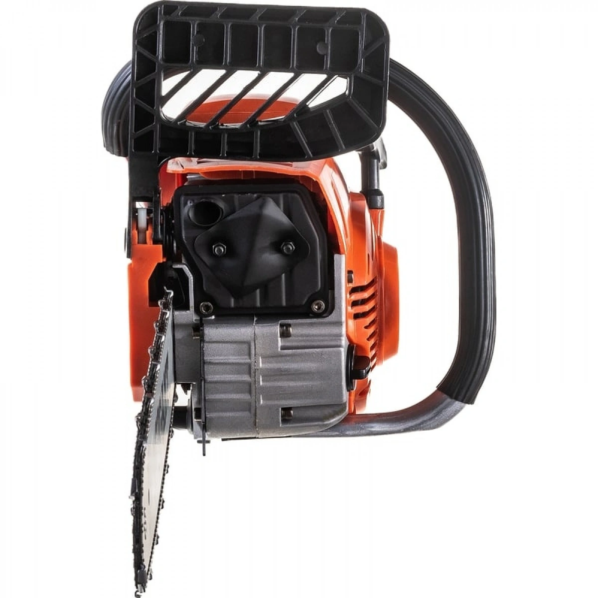 Бензопила отлично справляется с обрезанием кустов и небольших деревьев. Конструкция позволяет легко разобраться в управлении, дает возможность работать в труднодоступных местах.