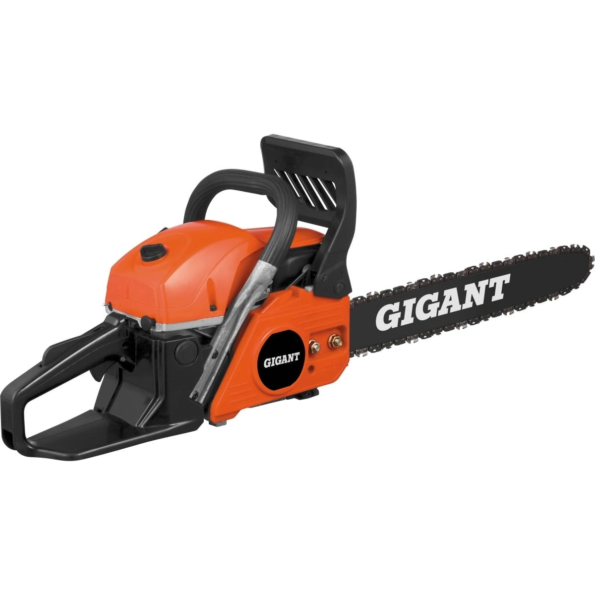 Бензопила Gigant – мощный инструмент для бытовых нужд. Мощность двигателя 2,1 л.с. обеспечивает возможность распила мягкой древесины. Бензопила имеет шину длиной 45 см, поэтому она легкая, быстрая и не требовательна к мощности. Система легкого запуска обеспечивает комфортный завод бензопилы, пользователю не нужно рывком заводить инструмент, достаточно просто тянуть стартер. Форма корпуса и эргономичный дизайн облегчают работу с пилой в труднодоступных местах.