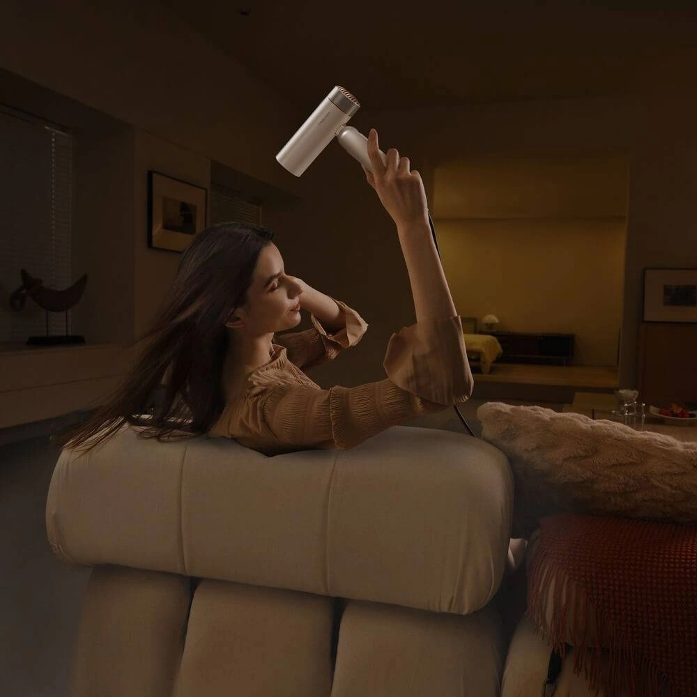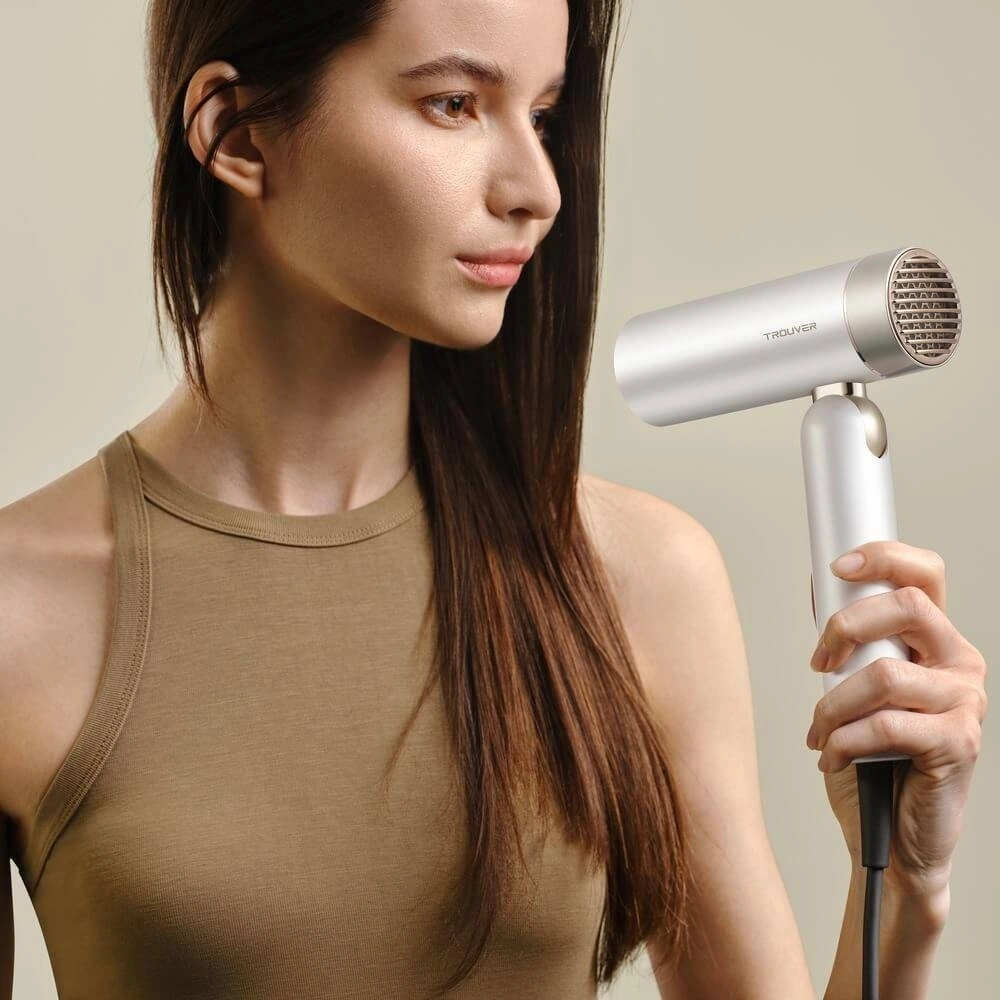 Фен Trouver Flip 10 с дизайном в белом и золотистом цветах поддерживает 4 температурных режима и 2 скорости воздушного потока. Предусмотрена функция подачи холодного воздуха. Регулировка нагрева и воздушного потока производится независимо. Мощность фена – 1500 Вт.