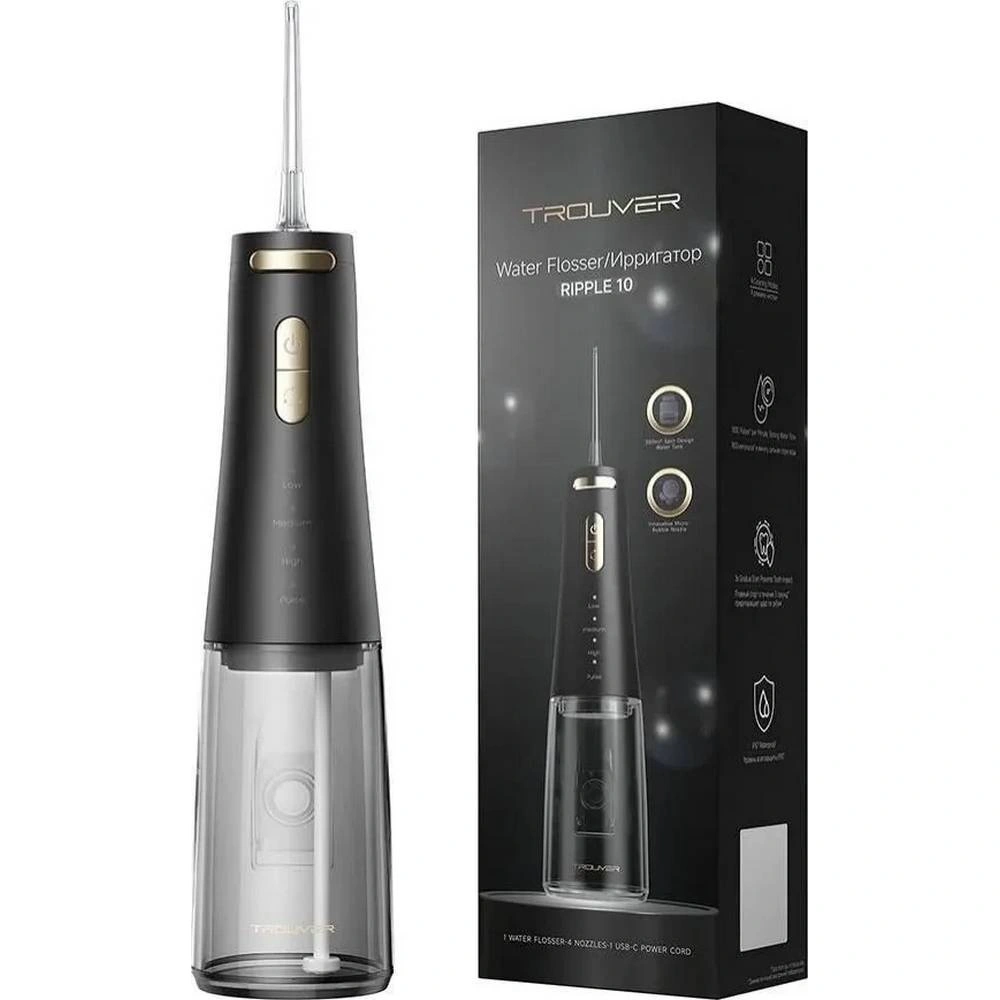 Ирригатор портативный Trouver, представленный в стильном черном цвете, сочетает в себе современный дизайн и высокую функциональность. Этот прибор идеально подходит для поддержания идеальной гигиены полости рта.