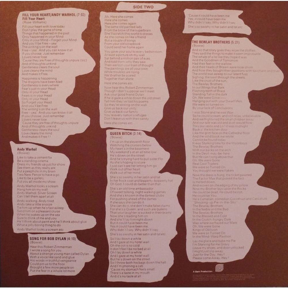 Changes, Oh! You Pretty Things, Eight Line Poem, Life On Mars?, Kooks, Quicksand, Fill Your Heart, Andy Warhol, Song For Bob Dylan, Queen Bitch, The Bewlay Brothers