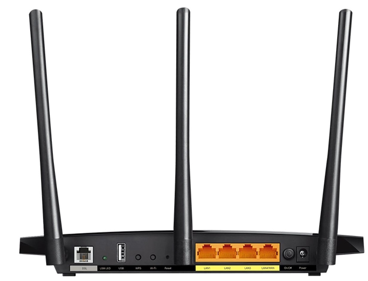 Маршрутизатор ADSL2+ TP-LINK Archer VR400 совмещает функционал двух устройств, работая как DSL-модем и Wi-Fi-роутер. Общая скорость Wi-Fi-подключения для этого роутера, поддерживающего одновременную работу в двух диапазонах, составляет 1,2 Гбит/с, причем 300 Мбит/с приходится на частоту 2,4 ГГц, а на частоте 5 ГГц скорость соединения достигает 867 Мбит/с. Возможность создания двух отдельных Wi-Fi-сетей поможет увеличить число одновременно подключенных сетевых устройств и снизит уровень интерференции. DSL-порт маршрутизатора ADSL2+ TP-LINK Archer VR400 поддерживает стандарты соединений VDSL2, ADSL2+, ADSL2, и ADSL. Устройство имеет один порт USB 2.0, с помощью которого можно присоединить 4G-модем или съемный накопитель. Маршрутизатор получил три внешние несъемные антенны с коэффициентом усиления сигнала 5 dBi для улучшения качества сигнала Wi-Fi-сети и расширения зоны действия Wi-Fi.