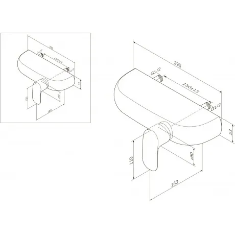 Материал изготовления корпуса - латунь. Жесткая подводка. Способ монтажа - настенный