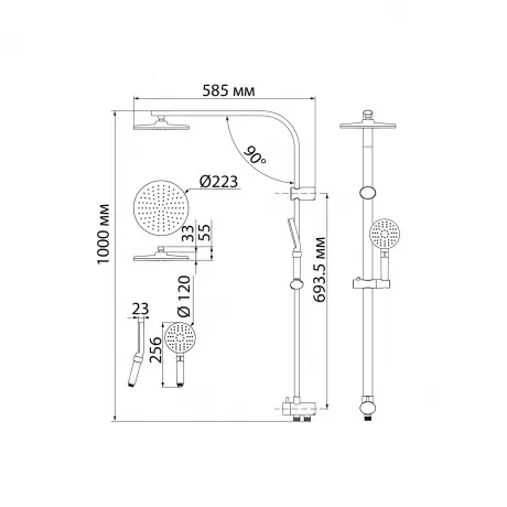 Описание товара Душевой гарнитур Iddis Swipe SWI3F97i76 с верхней лейкой