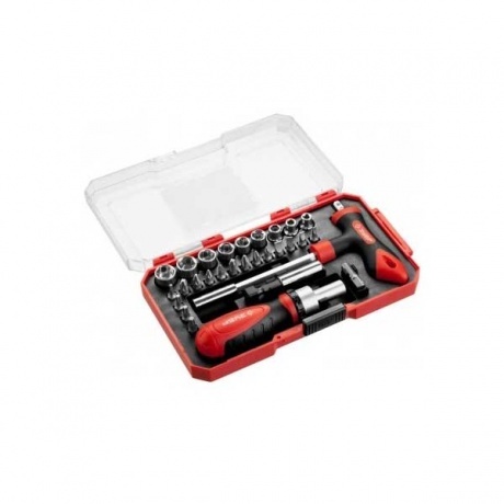 Отвертка с насадками Зубр МАСТЕР 25168-H29 служит для монтажа/демонтажа крепежных элементов. Набор универсален в эксплуатации и может использоваться как самостоятельно, так и в дополнении к шуруповерту. Биты выполнены из прочной и долговечной хромованадиевой стали. Обрезиненная рукоятка отвертки передает высокий крутящий момент от руки к профилю резьбовых соединений. Реверсивный храповый механизм значительно повышает скорость работы. Благодаря магнитному держателю насадки легко и быстро заменяются. Удобный бокс решает вопрос хранения и транспортировки