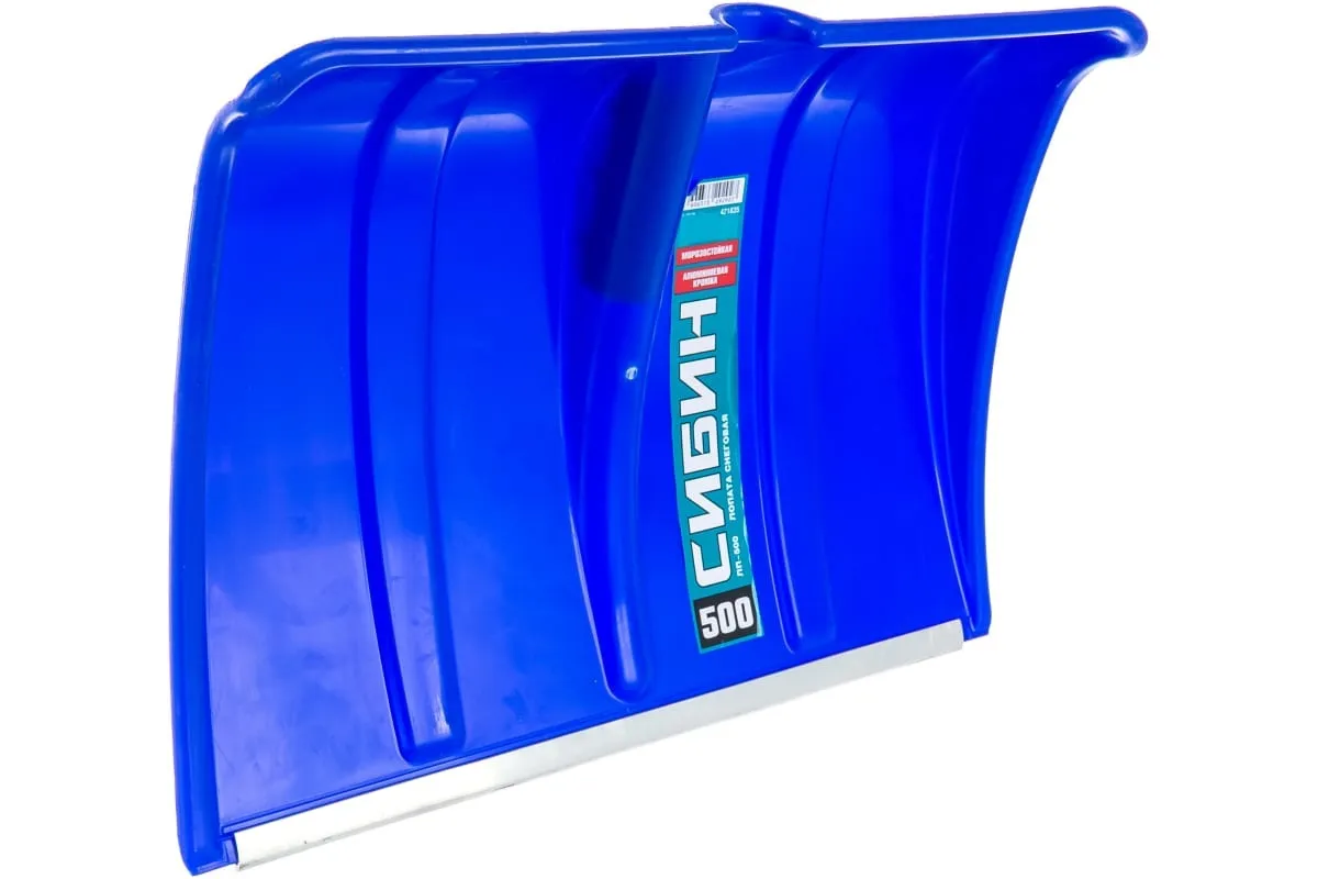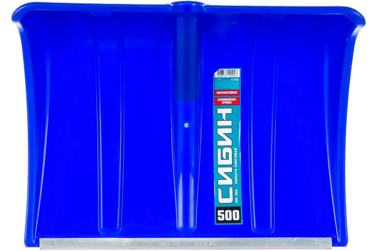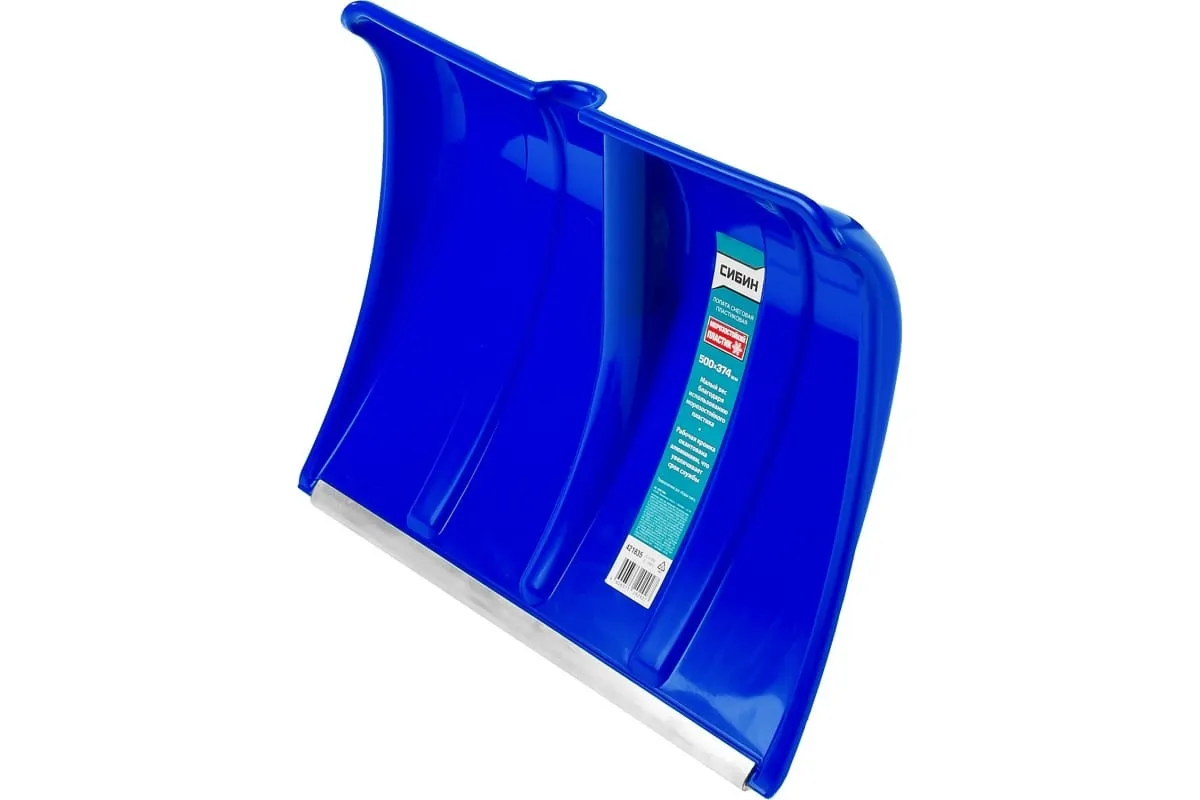Снеговая пластиковая лопата с алюминиевой планкой, без черенка, 500мм, синяя СИБИН 421835 подойдет для быстрой очистки от снега большой площади.