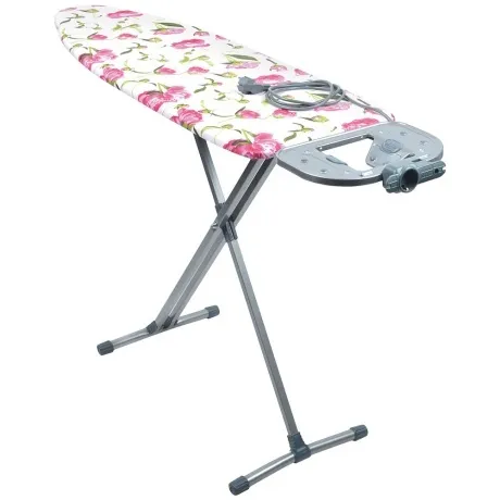 Гладильная поверхность-металл (1220х400мм), плавно регулируемая высота до 90 см, EUROподставка под утюг , электросоединитель 2,2м, розетка, материал чехла-хлопок, max нагрузка на глад.поверхность 25 кг, вес изделия-6,53 кг. Размер упаковки 1540х410х180мм. Принт чехла: С пионами. Расцветка соответствует представленному фрагменту
