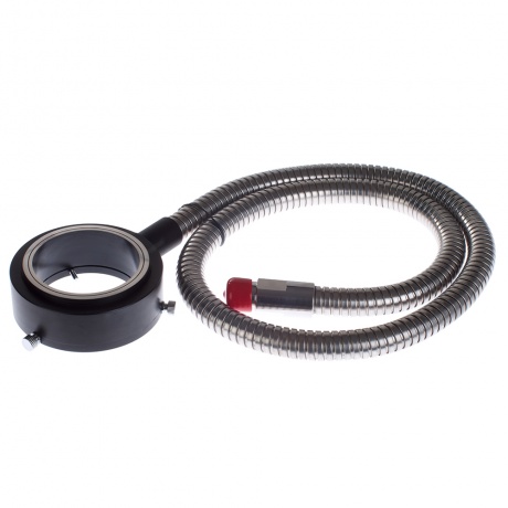 Волоконный осветитель предназначен для освещения поля зрения стереомикроскопа «холодным» светом, передаваемым от галогенной лампы осветительного блока через гибкий светопроводящий жгут. Волоконный осветитель представляет собой многожильный стеклянный волновод, размещенный в гибком металлическом рукаве. Внутренний диаметр кольцевого осветителя – 55 мм. Интегральный коэффициент пропускания жгута 0,4, Масса: не более 0,6 кг, длина жгута 0,9 м, толщина жгута 20 мм.