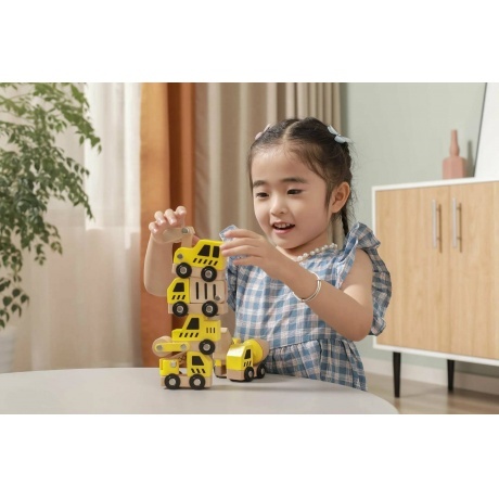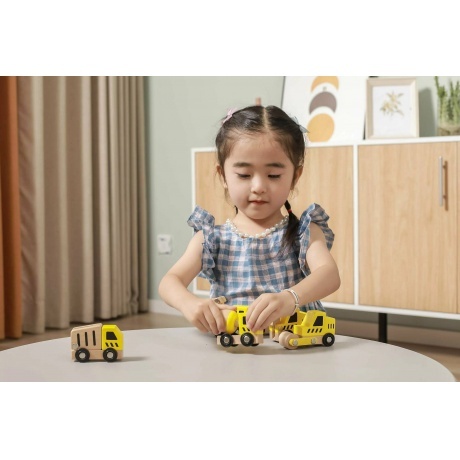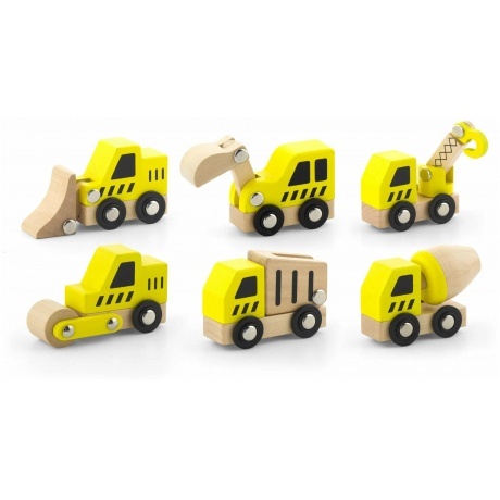 Комплект из 6 деревянных мини-машинок: экскаватора, кран, мусоровоз, бетономешалка, трактор, каток. Предназначены для сюжетно-ролевых игр, способствуют развитию воображения.