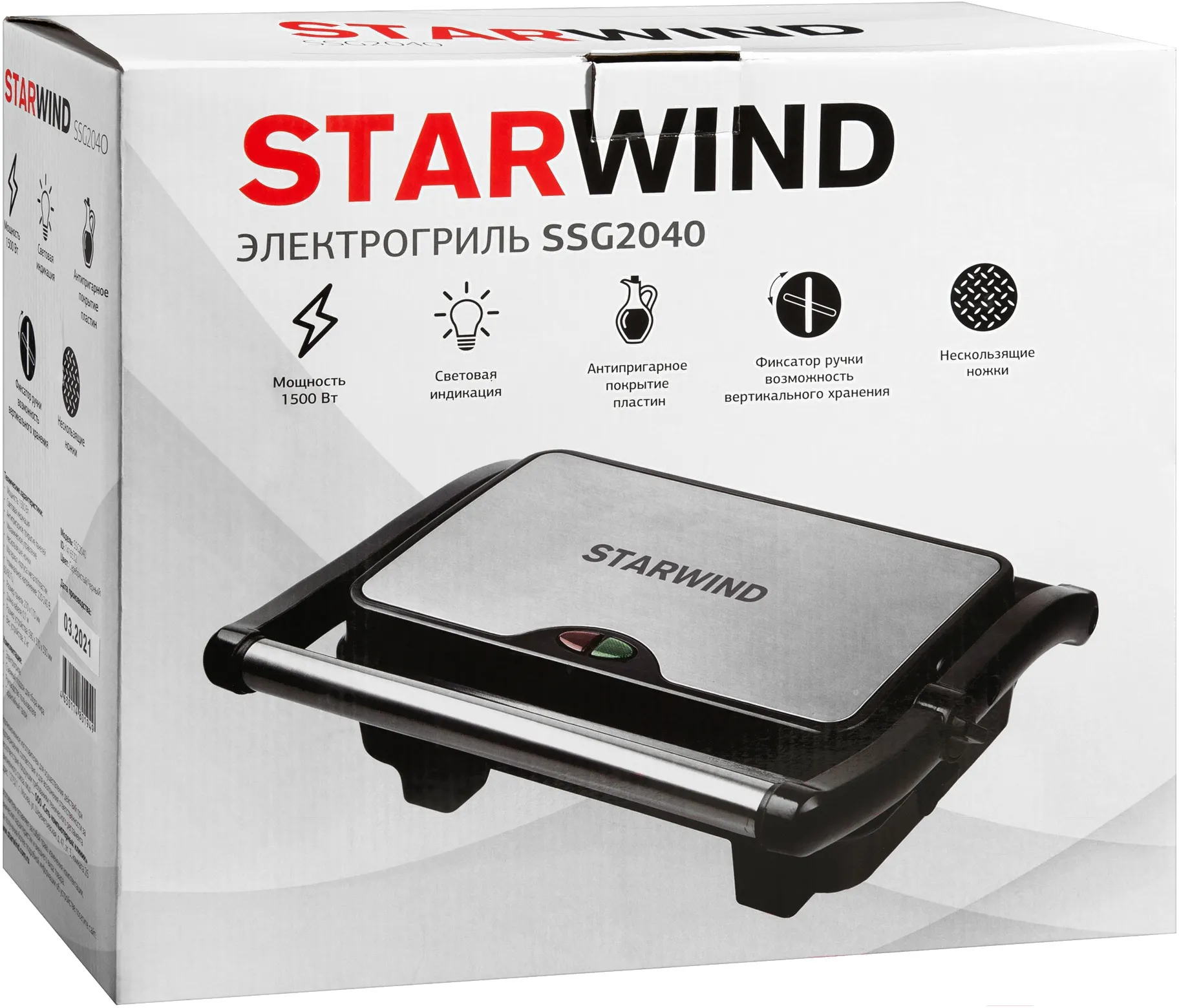 Описание товара Электрогриль Starwind SSG2040 серебристый/черный