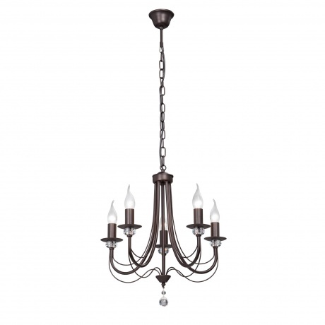 Основа люстры выполнена из металла коричневого цвета. Люстра со свечами будет хорошо смотреться в гостиной, кухне, над обеденным столом, кабинете, даче и удачно впишется в интерьер в стиле классический. Модель имеет 5 лампочек, оснащена цоколем E14 с максимальной мощностью лампочки 60 Вт и рассчитана на освещение площади до 15 кв. м.