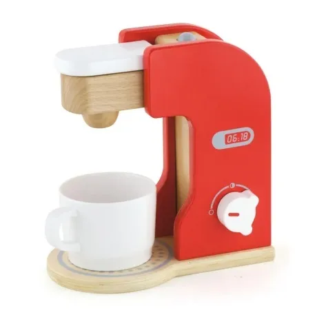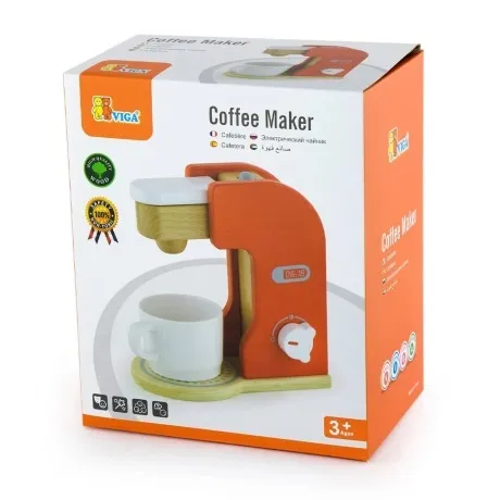 Игрушечная кофеварка Viga Toys из дерева вдохновит ребенка поиграть в бариста и кухню. При помощи детской кофеварки, чашки и капсулы с кофе малыш поймет технологию приготовления бодрящего напитка и устройства кухонной техники. Развивающая игрушка понравится юным поварам от 3 лет. Сюжетно-ролевые игры с кофеваркой от Viga Toys полезны для тренировки воображения, зрительно-моторной координации, мышления и любознательности. Для приготовления кофе малыш выполняет определенные действий последовательно, что развивает память и логическое мышление. Игровой набор юного кулинара хорошо подходит для совместных игр и развития социальных навыков. Может использоваться как дома, так и в детском саду. В педагогике Монтессори с подобными игрушками дети учатся самостоятельно обсуживать себя. Тема кулинарии близка и понятна малышам. Они часто наблюдают за взрослыми, занятыми домашними делами, поэтому им будет интересно приобщиться. Деревянная игрушка размером 21x20x11 см отлично дополнит детские кухни и наборы посуды. Рукоятка режимов поворачивается с характерным звуком, есть нарисованный таймер и кнопка сверху. Детали игрового набора отшлифованы до гладкости и имеют скругленные края. Краски гипоаллергенны. Все развивающие деревянные игрушки Viga Toys соответствуют стандартам качества и безопасности EN71 и ASTM.