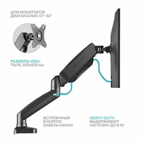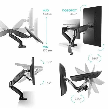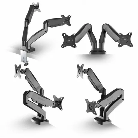 Настольный наклонно-поворотный кронштейн для двух мониторов, выполненный по технологии газлифт, ONKRON G160 подходит для мониторов и телевизоров диагональю от 13 до 32 дюймов и весом до 8 кг на каждый.