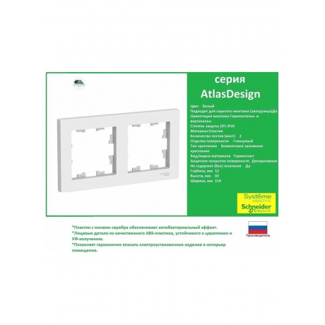 Описание товара Рамка 2-м AtlasDesign универс. бел. SchE ATN000102