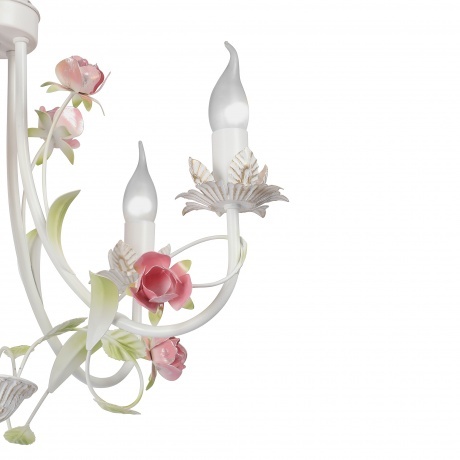 Люстра мощностью 200 Вт выполнена в стиле прованс, флористика. Подойдет для спальни, гостиной, кабинета и любого другого помещения соответствующего оформления. Для изготовления каркаса люстры использован прочный материал - металл. Отличные технические данные и надежные эксплуатационные характеристики будут радовать обладателя этой люстры долгие годы.