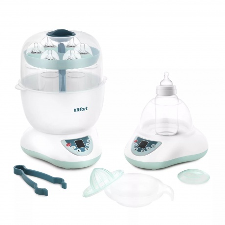 Во избежание загрязнения микроорганизмами, принадлежности для кормления ребёнка, пустышки, соски, молокоотсосы следует мыть и стерилизовать после каждого использования, прежде чем снова воспользоваться ими. Стерилизатор Kitfort КТ-2312 позволяет простерилизовать бутылочки и другие аксессуары. Бутылочки помещаются горлышками вниз на посадочные места в чаше, а соски и другие аксессуары раскладываются на поддоне. Можно простерилизовать 6 бутылочек за раз. Прибор позволяет разогреть детское питание в бутылочках, баночках и в стакане для подогрева. С помощью соковыжималки для цитрусовых вы можете отжать апельсиновый, лимонный, мандариновый и другие соки. Стерилизатор оснащён удобной панелью для выбора режима работы, установки таймера и ярким дисплеем. В комплекте со стерилизатором идут щипцы для извлечения горячих бутылочек, чтобы не обжечься. Все части стерилизатора, кроме основного блока, можно мыть водой с мылом. Корпус прибора протирается сухой или влажной тканью.