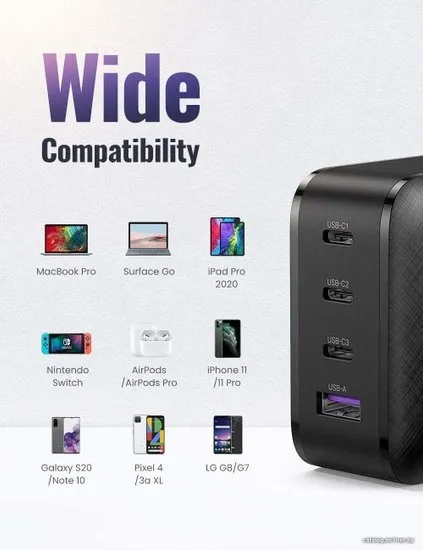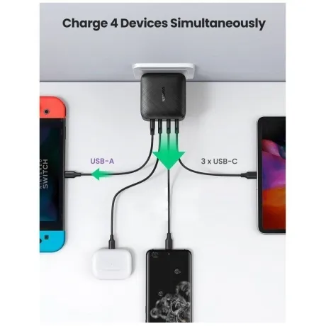Сетевое зарядное устройство Ugreen CD224 выполнено в корпусе из высококачественного пластика, устойчивого к различным воздействиям, что обеспечит надежность и долговечность изделия. Кроме того, для дополнительной безопасности использования модель поддерживает широкий ряд технологий защиты. Для подключения устройств на корпусе зарядного блока предусмотрено 3 выхода USB-C, а также 1 полноформатный разъем USB-A. Модель также отличается лаконичным дизайном, за счет чего легко найдет свое место среди ваших устройств.