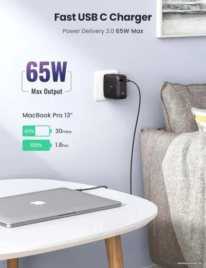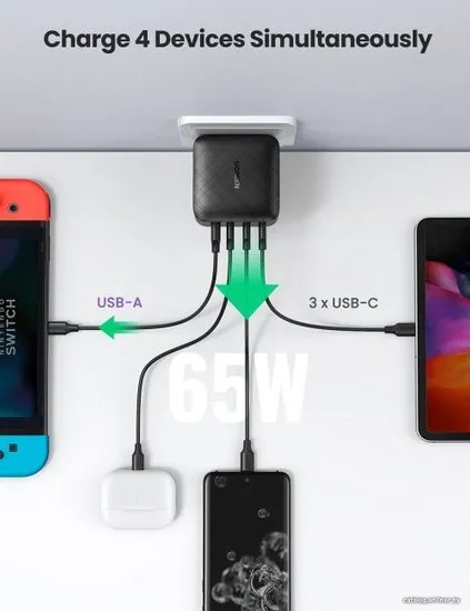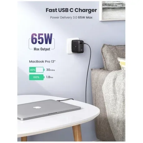 Сетевое зарядное устройство Ugreen CD224 отличается высокой функциональностью и производительностью, за счет чего может стать отличным выбором для зарядки сразу нескольких смартфонов, планшетов, камер и других устройств от обычной сети 220 В. Важной особенностью модели является высокая выходная мощность, соответствующая 65 Вт, за счет чего выходное напряжение может достигать 20 В, а сила тока – 5 А. Благодаря этим особенностям устройство может обеспечить высокую скорость и эффективность зарядки без риска повышенного износа заряжаемых аккумуляторов.
