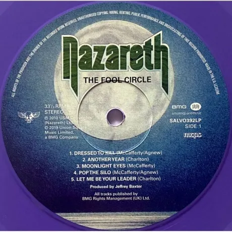The Fool Circle двенадцатый студийный альбом шотландской группы Nazareth выпущен в 1981 году . Музыка группы на данном этапе представляла собой смешение рока, регги и блюза , и ознаменовала собой уход от коммерческого, почти американского звучания . В альбом вошла концертная запись песни Cocaine , исполненная в мае 1980 года . Купленный в Котофото релиз лейбла Salvo повторяет оригинал , но масса 180 грамм и фиолетовая масса с красивым яблоком . Масса не шумная ,. ремастер удачный.