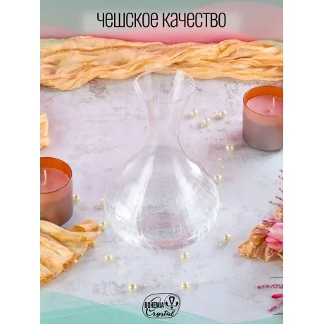Декантер - стеклянный графин из богемского стекла, предназначенный для подачи вина. Классические графины производят из прозрачного стекла. Особенностью богемского стекла является непревзойденное качество, прозрачность и яркое сверкание граней. Стекло звенит долгим чистым звуком. Предназначен для подачи холодных напитков, для сервировки стола.