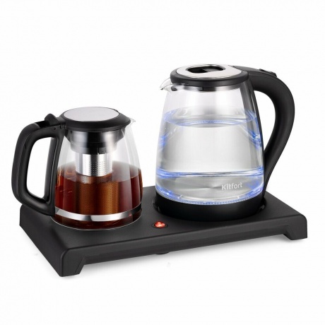 Стильный и функциональный чайный набор Kitfort КТ-6179 состоит из чайника емкостью 2 л, кувшина с фильтром для заварки емкостью 1.2 л и базы. Набор поможет вам не только вскипятить воду, но и заварить чай или кофе. Корпус чайника выполнен из стекла со вставкой из пластика. Крышка выполнена из сочетания нержавеющей стали и пластика. Мерная шкала находится на боковой стороне. Конструкция чайника не позволяет ручке нагреваться. Кувшин для заварки изготовлен из термостойкого стекла и имеет съемный фильтр для чая или кофе. В месте установки кувшина на базу присутствует скрытый нагревательный элемент с функцией поддержания тепла.
