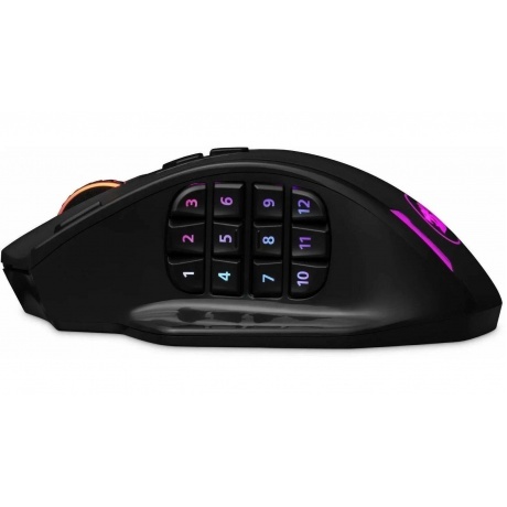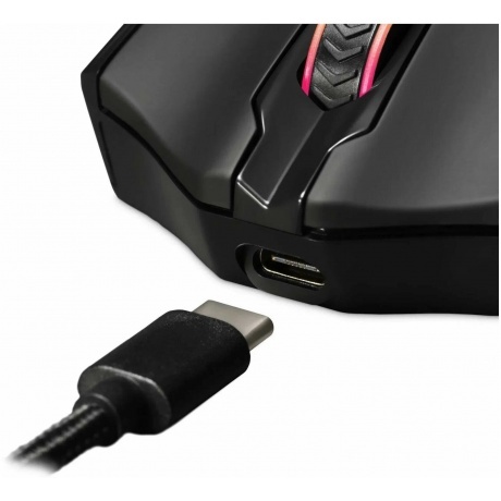 Мышь беспроводная/проводная Redragon Impact Elite ? игровая, функциональная модель с разрешением светодиодного сенсора 16000 dpi. Возможность смены показателя dpi при помощи специальной кнопки позволяет настроить манипулятор в соответствии с динамикой игры или для работы в стандартных офисных программах. Также можно регулировать частоту опроса. Redragon Impact Elite использует два способа подключения: проводной при помощи отсоединяемого кабеля и беспроводной через радиоканал. Во втором случае для подключения в свободный компьютерный разъем устанавливается USB-ресивер, обеспечивая стабильную, бесперебойную связь в радиусе 10 м. Если вы выбираете беспроводное соединение, внутрь корпуса устанавливается аккумулятор. Украшением корпуса служит RGB-подсветка. Особенность модели в использовании 20 кнопок, среди которых как стандартные клавиши, так и программируемые. Последние можно настроить на выполнение последовательности команд или определенных действий для более легкой игры, получения более скоростных реакций и преимущества перед соперником.