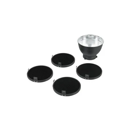 Рефлектор Falcon Eyes R-180HC Kit диаметром 17.8 см с сотовыми насадками предназначается для формирования направленного и равномерного светового потока от осветителей постоянного и импульсного света с байонетом Bowens. Рефлектор помогает сделать свет более направленным и контролируемым за счет ограничения светового потока и многократного переотражения от внутренней серебристой фактурной поверхности.