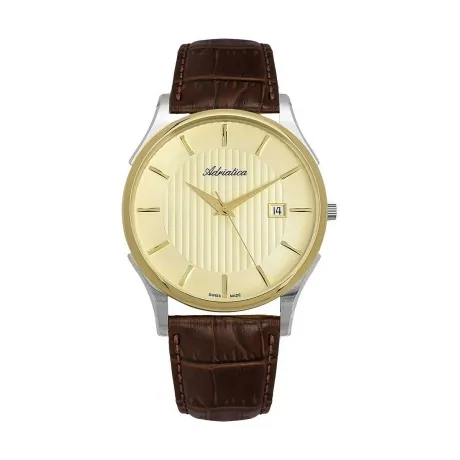 Классические мужские часы от швейцарского бренда Adriatica. На циферблате присутствует апертура текущей даты. Точность хода обеспечивает швейцарский кварцевый механизм ETA F06. Ремешок из натуральной кожи с классической застежкой. Вес часов 54 грамма.