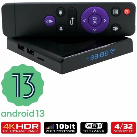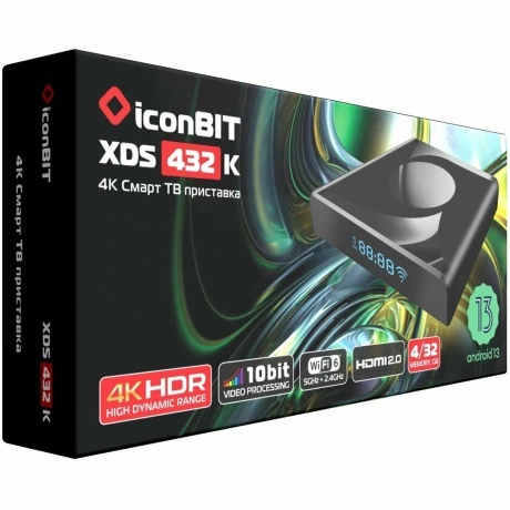 Медиаплеер iconBIT XDS432K позволяет расширить функциональные возможности телевизора. Устройство под управлением ОС Android предоставляет доступ к фильмам, телеканалам, сервисам и развлекательному контенту в сети Интернет. Поддержка разрешения 4K UHD обеспечивает четкость воспроизведения видео. Для подключения к телевизору предусмотрен видеоразъем HDMI 2.0. Беспроводная синхронизация медиаплеера iconBIT XDS432K с устройствами выполняется с помощью технологий Bluetooth и Wi-Fi. На передней стороне корпуса есть цифровой дисплей. Для удобного управления в комплекте поставляется пульт ДУ.