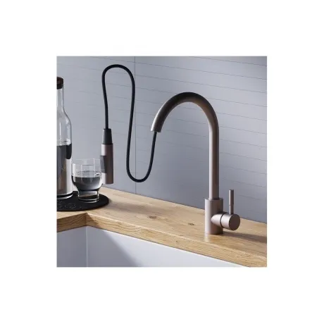 Оригинальное решение для кухни - смеситель для мойки с вытягивающимся изливом. В носике смесителя встроен вытягивающийся душ, благодаря которому так просто поддерживать гигиеническую чистоту на кухне и наполнять любые емкости!. Утонченный элегантный дизайн сохранит свою актуальность на долгие годы и останется украшением на вашей кухне. Удобная эргономичная ручка-стик обеспечивает легкое управление напором воды в одно касание. Для экономии расхода воды в смеситель установлен аэратор, который насыщает струю воды воздухом обеспечивая хороший напор даже при низком давлении в системе.Помимо этого, в моделипрослеживается немецкая педантичность и продуманность в деталях: эргономичная ручка, поворотный излив