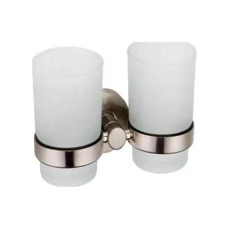 Настенный стеклянный двойной стакан для зубных щеток с круглым основанием в стиле модерн, который подойдет и к любому современному интерьеру ванной комнаты.