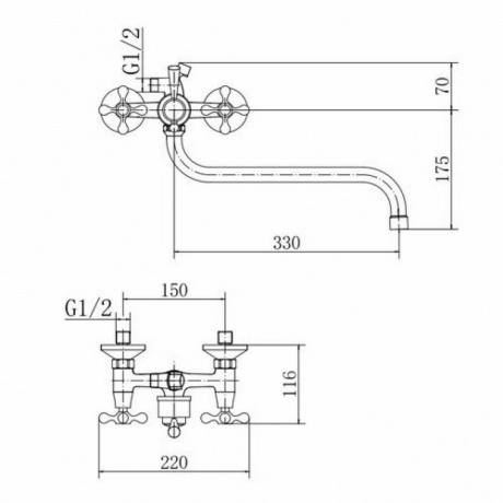 поворотный излив 330 мм, душевой гарнитур с лейкой abs d=80 мм и шлангом 1500 мм в стальной оплётке sus201