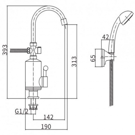 ручная лейка с настенным держателем, гибкая подводка 450 мм, крепёж