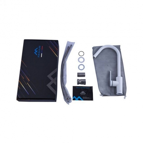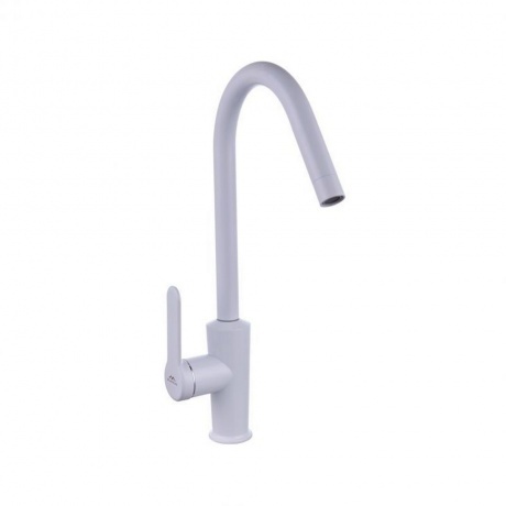 Смеситель для кухни FASHUN A54025-8 - это высокий смеситель с поворотным изливом, предназначенный для установки на кухонную мойку или столешницу. Он имеет керамический картридж и гибкую подводку, что обеспечивает удобство использования. Доступен в белом цвете.