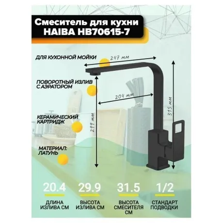 Описание товара Смеситель для кухни Haiba (HB70615-7)