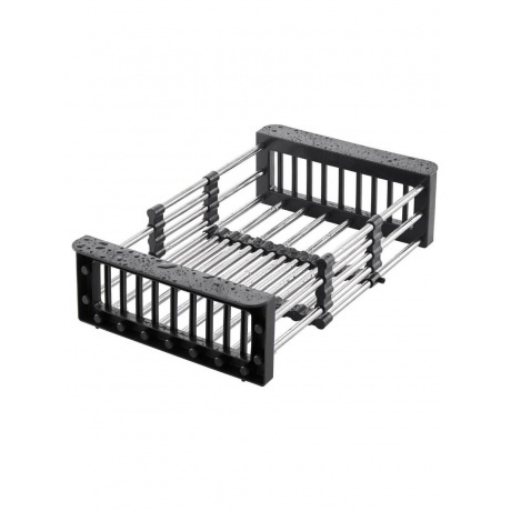 A405 универсальный телескопический коландер для кухонной мойки. ширина 224мм. высота 91.5мм. длинна MIN 286мм., MAX 468мм. материал ABS пластик, нержавеющая сталь. цвет черный. профиль матовый.