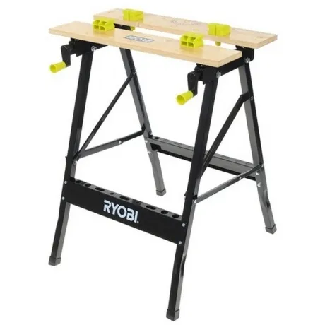 Складной верстак Ryobi RWB01 укомплектован 4 губками, которые служат для крепления заготовок, с которыми производится работа. Губки могут переставляться: с помощью этой особенности достигается универсализм верстака. Одним из преимуществ модели является наличие линейки и транспортира.