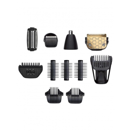 Мультитриммер BaByliss MT861E с 10 насадками для различных задач. Полное время зарядки 8 часов. 70 мин беспроводное время работы. Лезвия из карбон-титана. Полная защита от влаги.