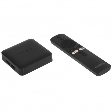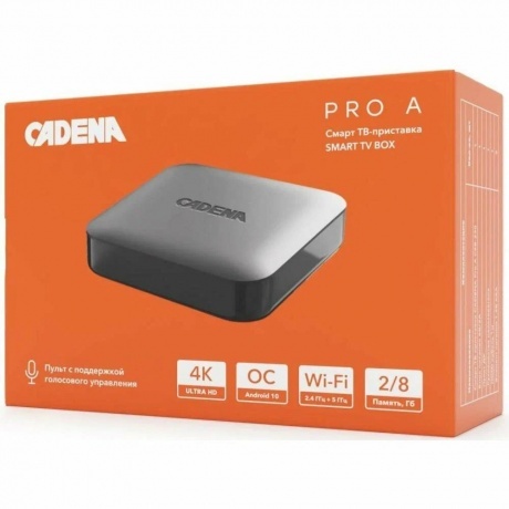 Медиаплеер Cadena PRO A CSB-230 под управлением ОС Android 10 расширяет функциональные возможности телевизора без поддержки Smart TV. Она предоставляет доступ к потоковым сервисам контента и магазину приложений Google Play. Подключение медиаплеера к Интернету выполняется через встроенный модуль Wi-Fi и порт Ethernet 10/100 Mbps. Для клавиатуры, мыши, внешних накопителей есть 2 порта USB. Пульт ДУ синхронизируется с приставкой Cadena PRO A CSB-230 по беспроводному интерфейсу Bluetooth и поддерживает голосовое управление при помощи ассистента Google.