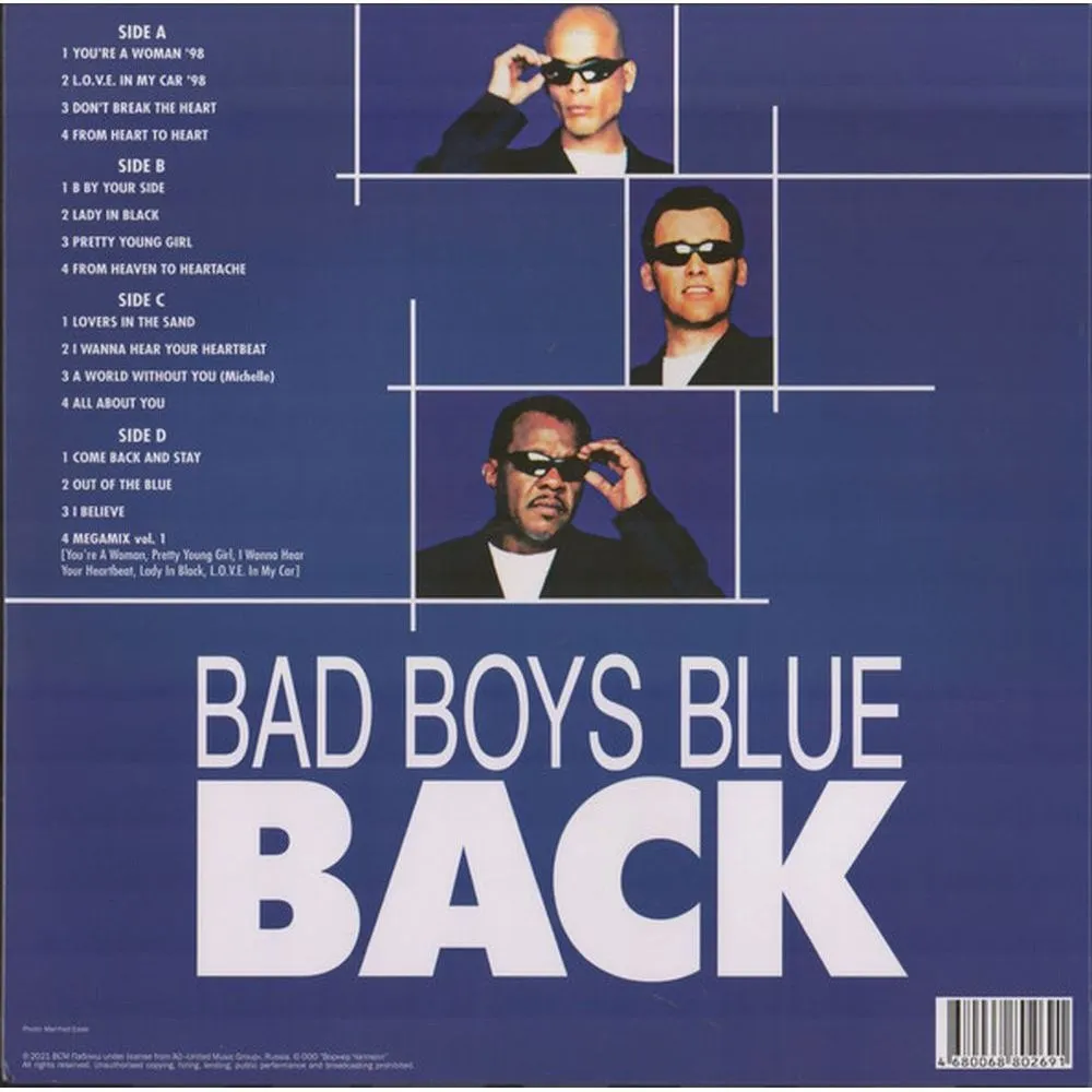 "Back" - издание студийного альбома 1998 года коллектива Bad Boys Blue. Bad Boys Blue - евродиско-группа, которая за свою историю выпустила около тридцати хит-синглов, попавших в чарты многих стран мира, в том числе в США. Bad Boys Blue возникла летом 1984 года в Кёльне (Германия) после того, как авторы и продюсеры Тони Хендрик и Карен ван Хаарен (Карин Хартманн), владеющие независимым рекорд-лейблом Coconut Records, стали искать исполнителей для записи сингла "L.O.V.E. In My Car". Специально для этой песни они решили начать совершенно новый проект. Первоначально поиск исполнителей вели в Лондоне, но затем кто-то из знакомых порекомендовал продюсерам кандидатуру выходца из США Эндрю Томаса, музыканта и диджея, живущего в Кёльне. Эндрю, в свою очередь, познакомил продюсеров с Тревором Тэйлором, а Тревор привёл в группу Джона МакИнерни. Первоначально группу хотели назвать Bad Guys, затем Bad Boys, но остановились на Bad Boys Blue, из-за явной аллитерации, поэтому же музыканты выступали в сценических костюмах синего цвета. Дебютный сингл "L.O.V.E. In My Car" группа выпустила в сентябре 1984 года. Ведущий вокал принадлежал Эндрю Томасу. Пластинка пользовалась определённым успехом на дискотеках и в клубах, но в чарты не попала. Это была первая и последняя сингл-композиция, которую исполнял Эндрю, продюсеры решили, что Тревор Тэйлор будет исполнять ведущий вокал в следующих композициях. Настоящий успех к трио пришёл только весной 1985 года, когда следующий сингл "You’re A Woman" произвёл настоящий фурор во многих европейских странах, моментально оказавшись в первой десятке лучших песен. В Германии сингл достиг восьмого места и почти четыре месяца не покидал немецкий Top20. В этом же году был выпущен первый студийный альбом "Hot Girls, Bad Boys". На нём лидирующий вокал в большинстве песен (кроме "L.O.V.E. In My Car") принадлежал Тревору Тэйлору. Практически сразу же после выхода дебютного альбома Bad Boys Blue получили статус культового коллектива на территории Советского Союза наряду с другой немецкой группой Modern Talking.