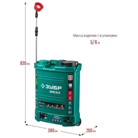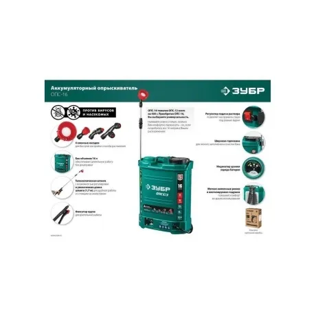 Опрыскиватель аккумуляторный ЗУБР 16 л, (ОПС-16) - характеристики и описание, фото и цены представлены на карточке товара. Для того чтобы купить товар по цене 3952 руб., вам надо позвонить по телефону 8(846)300-23-63 в Самаре, или оформить покупку в личном кабинете.