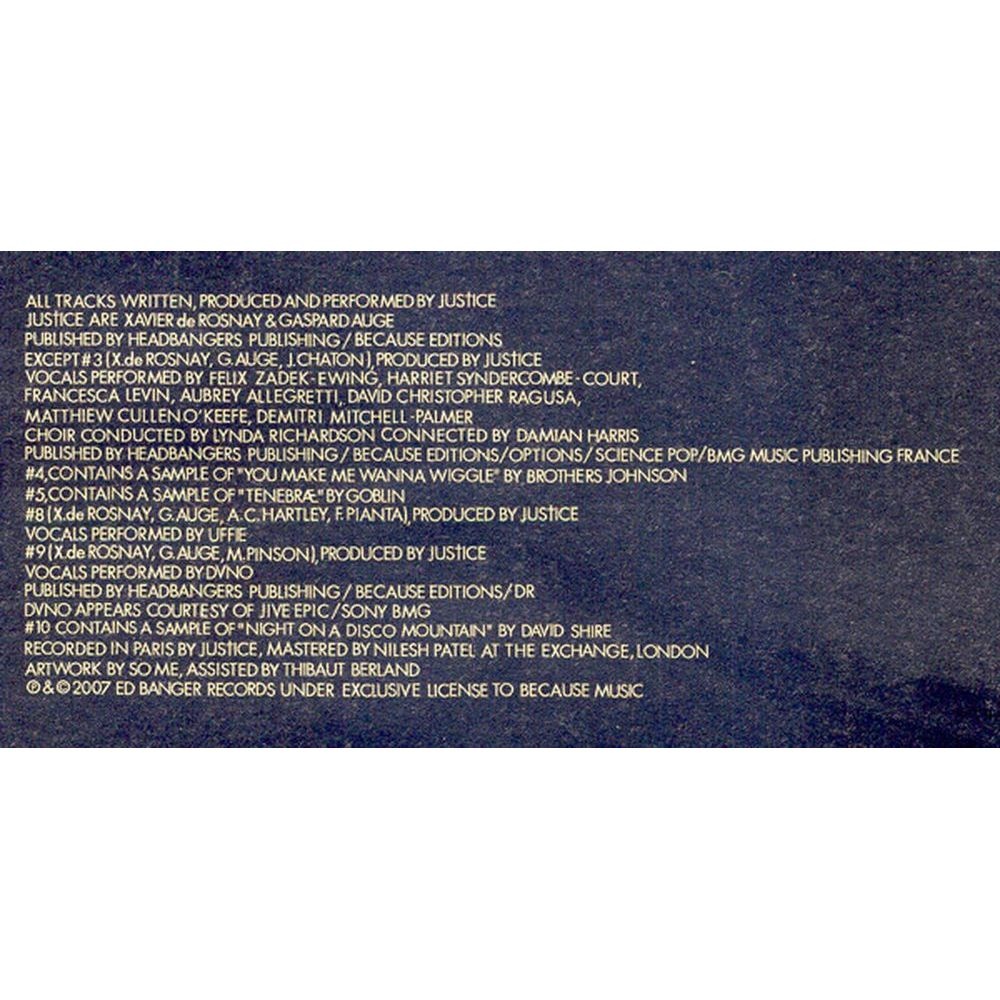 Cross - переиздание 2018 года на двойном виниле дебютного альбома французского электро-хаус-дуэта Justice, первоначально вышедшего в 2007 году. В 2009 году альбом получил серебряный статус в Великобритании, разойдясь тиражом в 60 000 копий. Многие песни с альбома использовались в различных фильмах, сериалах, рекламе и компьютерных играх. Justice - французский хаус дуэт, состоящий из Ксавье де Росне, родившегося в 1982 году и Гаспара Оже, родившегося в 1979 году. Проект организован в 2003 году.Свою популярность и значимое место в музыкальной индустрии они получили благодаря своему необычному отношению к музыке. С самого начала парни хотели писать поп-музыку. Они начали выступать в качестве диджейского дуэта на разных вечеринках Ed Banger Records, и после начали делать ремиксы на различных исполнителей, таких как: Франц Фердинанд, Фэтбой Слим, Ленни Кравиц, Бритни Спирс и других.