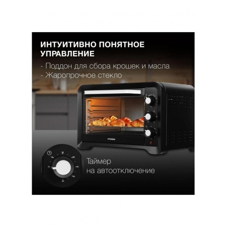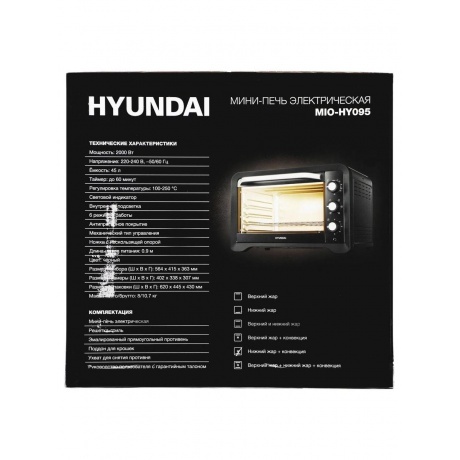 • Мини-печь Hyundai MIO-HY095 45л. 2000Вт черный - фото 15