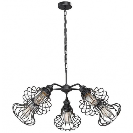 подвесная люстра vitaluce v4499-1/5 с пятью лампами e27 мощностью до 60 вт каждая, выполнена из металла в стиле лофт, подходит для освещения площади до 15 м2, цвет черный матовый, высота 86 см