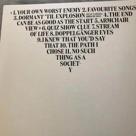 Your Own Worst Enemy, Favourite Songs, Dormant Til Explosion, The Start, Armchair View Quiz Show Clue, Stream Of Life, Doppelg?nger Eyes, I K That Youd Say That, The Path I Chose, A Society