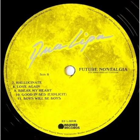 Отпразднуйте 5-ю годовщину Future Nostalgia, второго студийного альбома Дуа Липы, с этим потрясающим специальным изданием, включающим расширенную версию альбома Future Nostalgia Moonlight Edition 2021 года и альбом ремиксов Club Future Nostalgia. Этот уникальный релиз включает новые яркие иллюстрации. Лимитированное издание на черном и цветном виниле. «Я буду вечно благодарна альбому, который изменил мою жизнь и научил меня так многому за эти пять лет. У меня есть воспоминания на всю жизнь и песни, которые их сопровождают. Будущая ностальгия навсегда» - Дуа Липа.