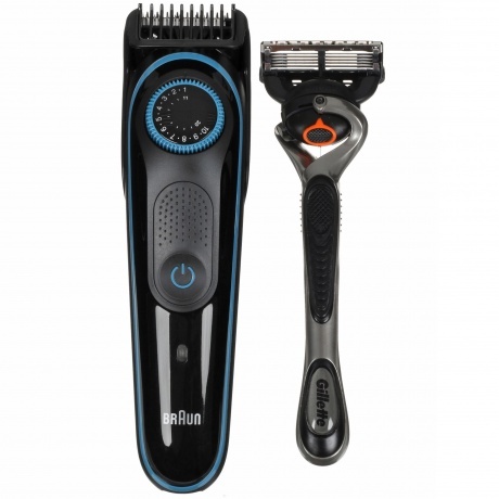 триммер, бритва Gillette, зарядное устройство, регулируемая насадка (1-10 мм), регулируемая насадка (11-20 мм), щеточка для чистки, документация, упаковка