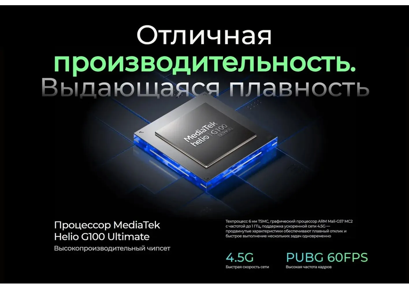 Tecno SPARK 40 Pro смартфон с улучшенной производительностью, поддержкой фирменного ИИ. Тонкий, элегантный и надёжный смартфон, устойчивый к падениям. Мощный восьмиядерный процессор MediaTek Helio G100 Ultimate дополнен большим объёмом постоянной и оперативной памяти для эффективной и многозадачной работы. Прямой AMOLED-экран диагональю 6.78” со сверхчётким разрешением 1.5K защищён закалённым стеклом Gorilla Glass 7i. Частота обновления до 144 Гц обеспечивает отличную динамику и плавную прокрутку контента, сохраняя как можно дольше максимальную энергоэффективность смартфона. Яркость до 4500 нит позволяет с комфортом пользоваться смартфоном даже в солнечный день. Вместе со стереодинамиками с объёмным звуком Dolby Atmos и возможностью подключения беспроводных наушников через Bluetooth 5.4 или проводных — через Mini Jack 3.5 мм легко окунуться с головой в мир просматриваемого контента. Модель оснащена фирменным искусственным интеллектом TECNO AI с умным ассистентом Ella. Она умеет общаться и распознавать голосовые команды на русском языке, выполняет разные запросы — от удаления лишних объектов на фото до вызова такси. Смартфон также умеет с помощью TECNO AI генерировать и редактировать тексты, осуществлять поиск информации как на устройстве, так и в интернете. Корпус смартфона с равномерно скошенными углами имеет высокую ударопрочность и полную защиту от попадания пыли, а также случайных брызг воды по стандарту IP64. Тонкий корпус 6.69 мм и лёгкий вес 170 граммов делают SPARK 40 Pro одним из самых изящных и эргономичных устройств на рынке смартфонов.